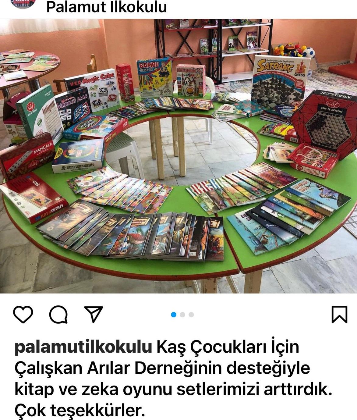 Kaş Turizm Derneği’nin Sütleğen Ortaokulu öğrencilerinin yazar Buket Uzuner ile buluşup söyleşi  yapması projesine, Çalışkan Arılar Derneği  200 kitap satınalımı ve yazarımızın gönüllüleri ile birlikte Sütleğen’e ulaştırılmasıyla destek vermiştir.